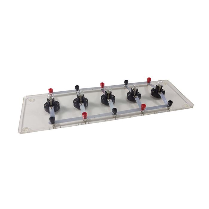 This bulb holder is a simple but effective tool to explore series and parallel circuits. Five bulbs can be arranged in series, parallel or complex by adjusting the Bussbars. Includes 5 bulbs.