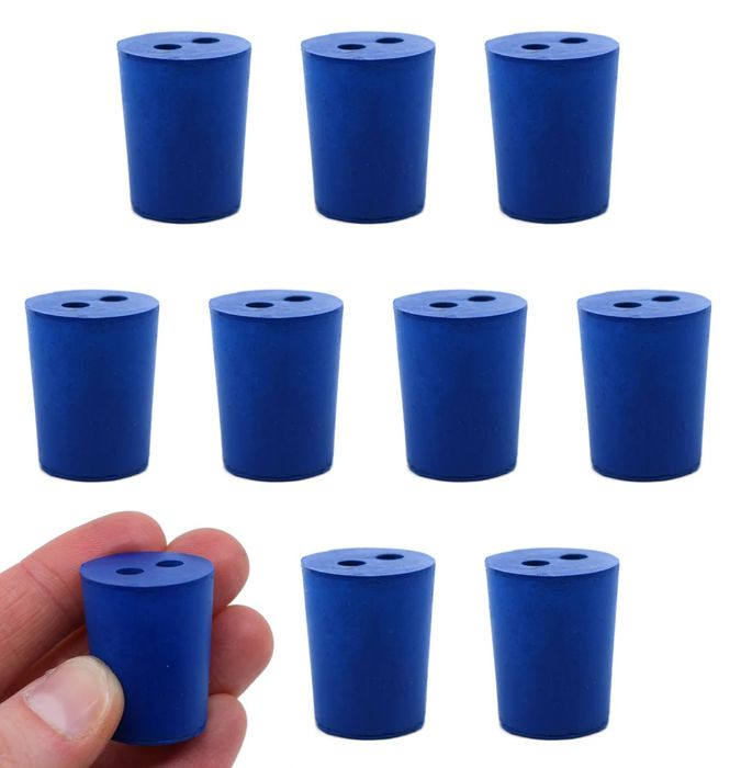 - NEOPRENE STOPPERS WITH 2 HOLES ||Pack of 10 neoprene rubber stoppers. Each stopper features a single hole measuring 5mm in diameter. Blue color