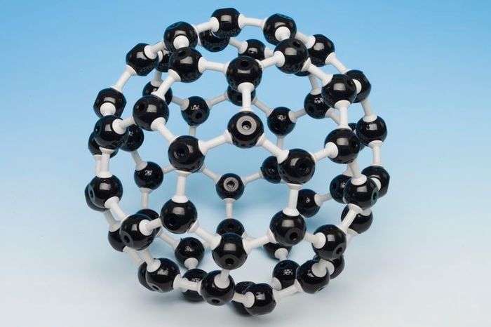 Contains a total of 60 Carbon atoms (trigonal bipyramid, black) plus links to build a model of Buckminster Fullerene.