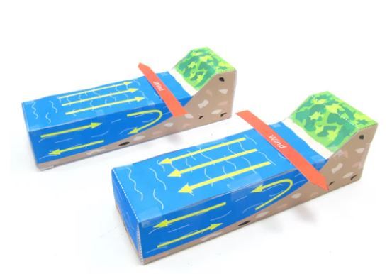 First, your students build their model coastlines out of the colourful parts. Then, they use their model to look at how upwelling and downwelling happen. The model covers both the northern and southern hemispheres and why the Coriolis effect and Ekman transport are important.