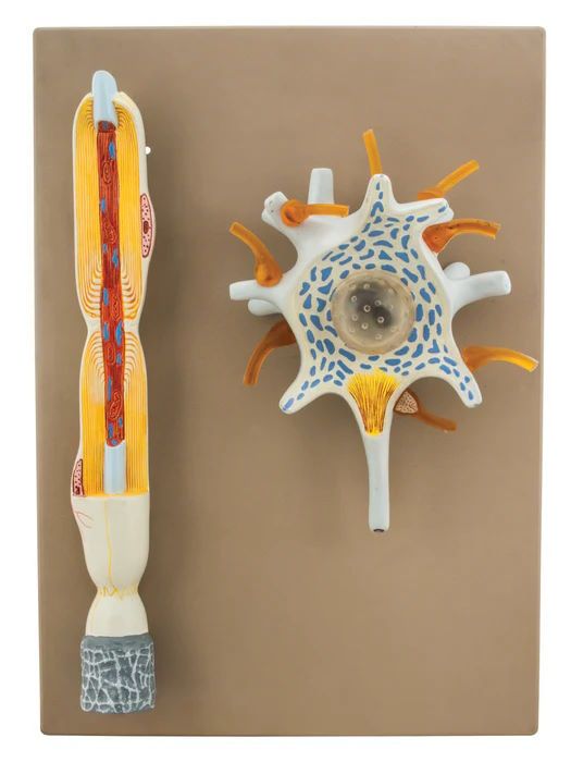 Enlarged 2500 times, showing electron microscopic structure with separate modulated nerve fibre. Mounted on base. Numbered with English Key Card.Size 42 x 30 x 13 cm approx. Weight 1 kg approx.
