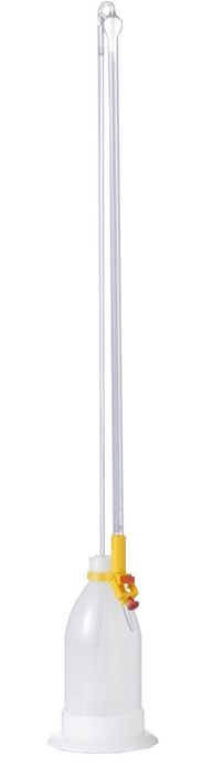 Soda glass burette, PVC filling tube, silicone discharge tube, 1000ml LDPE reservoir bottle, HDPE base.