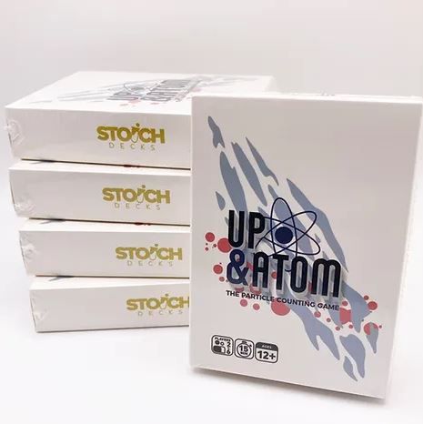 Learn to count particles with moles! Chemists learn to convert among moles, atoms, and grams. Up & Atom is a trick-taking game where players bid on how many tricks they can win by playing the card with the most atoms. Players quickly learn to estimate and compare mole values, preparing them for learning stoichiometry.