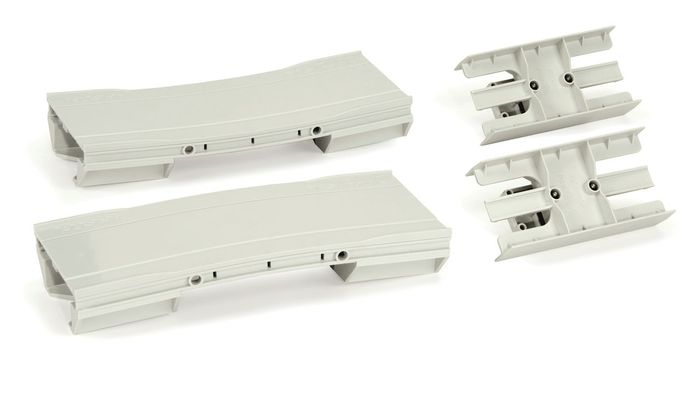 Set includes 1x Concave-up Curved Piece, 1x Concave-down Curved Piece and 2x PAStrack Connector Clips.