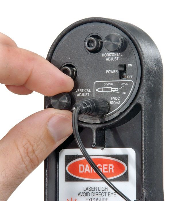 The horizontal and vertical positions of the beam can be easily adjusted by turning the thumb screws on the back of the laser.
