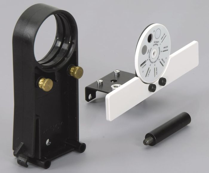 The Aperture Bracket acts as a mask for a light sensor where the wheel is rotated to select different size slits, defining the spatial resolution.