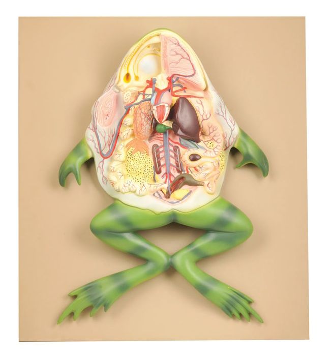Useful for students studying the structure of frog anatomy showing all internal parts. Mounted on base. Supplied with English Key Card.