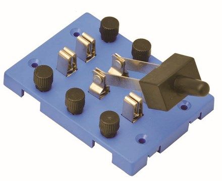 Double pole - double throwDurable plastic base knife switches that stand up during tough student use. Poles & knives are made of brass for good electrical connections.
