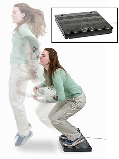 The 2-axis Force Platform has a second plate which rides on rollers on the base force platform to measure the force parallel to the platform. There are a total of 5 force beams: 4 corner beams to measure the normal force and a fifth beam to measure the parallel (sideways) force.
