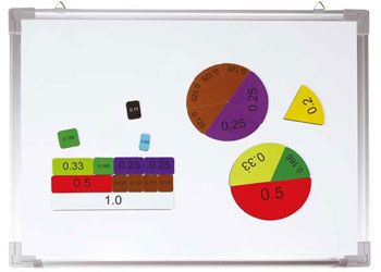 These colourful magnetic decimal builders represent fractions, decimals in two different ways. Circular to show groups and rectangular to show lengths as part of a whole. Each set contains 4mm thick foam pieces, light weight, yet classroom durable with a wipe clean surface. Suitable for grade 2 to year 8.Rectangle whole measures 20 x 3cm and circle whole measures 13.5cm. Set of 106
