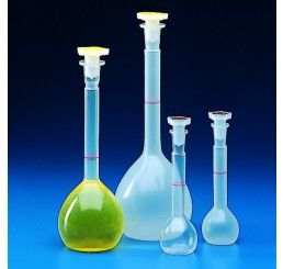 These flasks create no meniscus so final readings are easy. Calibrated gravimetrically at 20°C. Translucency of PP enhanced when in contact with liquid. Thick walls eliminate distortion. Thin neck make final reading precise. Autoclavable. Chemically non-absorbant. No wetting. Stoppers included. SUITABLE FOR FOODSTUFF.