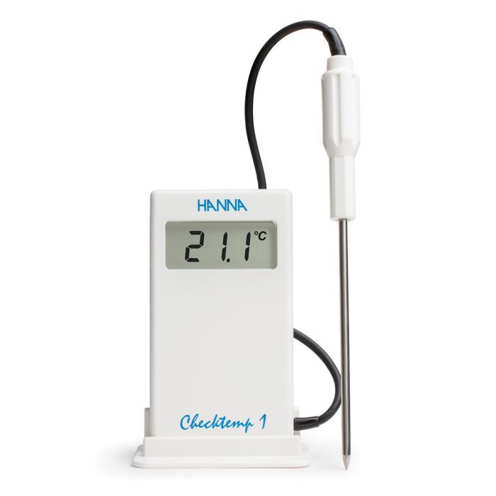 The Checktemp®1 is a high accuracy thermometer with a 1 m (3.3') flexible cable between the meter and the stainless steel probe. The sharp-tip penetration probe easily penetrates semisolid products such as fruits, vegetables, and cheeses. This probe can also handle liquid, air and measurements in frozen materials. These thermometers utilize a NTC thermistor sensor to measure the temperature. Thermistors make it possible to obtain extremely high accuracy in a very short period of time. The HANNA CAL CHECK® feature has been incorporated into the Checktemp®1. Activate the "test" switch and this device will simulate an ice bath of 0.0°C (32.0°F) signal that is displayed on the LCD within a range of ±0.3°C (±0.5°F). This assures the user that the reading is reliable and accurate, every time. Checktemp®1 makes routine controls fast and simple for both incoming and outgoing goods. Constructed of AISI 316 stainless steel material, this probe is in compliance with food regulations making it an ideal instrument for measuring temperature according to HACCP requirements.