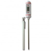 Vertical barrel digital test thermometer with vertical display and 120mm stainless steel probe which is commonly used as a digital meat thermometer. Supplied with pocket case and clip. Batteries included.