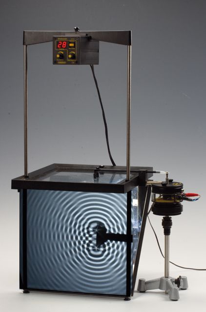 * Please note: the 2211.00 ripple tank kit does NOT include the tripod base as shown in the lower right corner (underneath the vibrator) of the picture. Please contact us for details on the base & rod lengths if required.